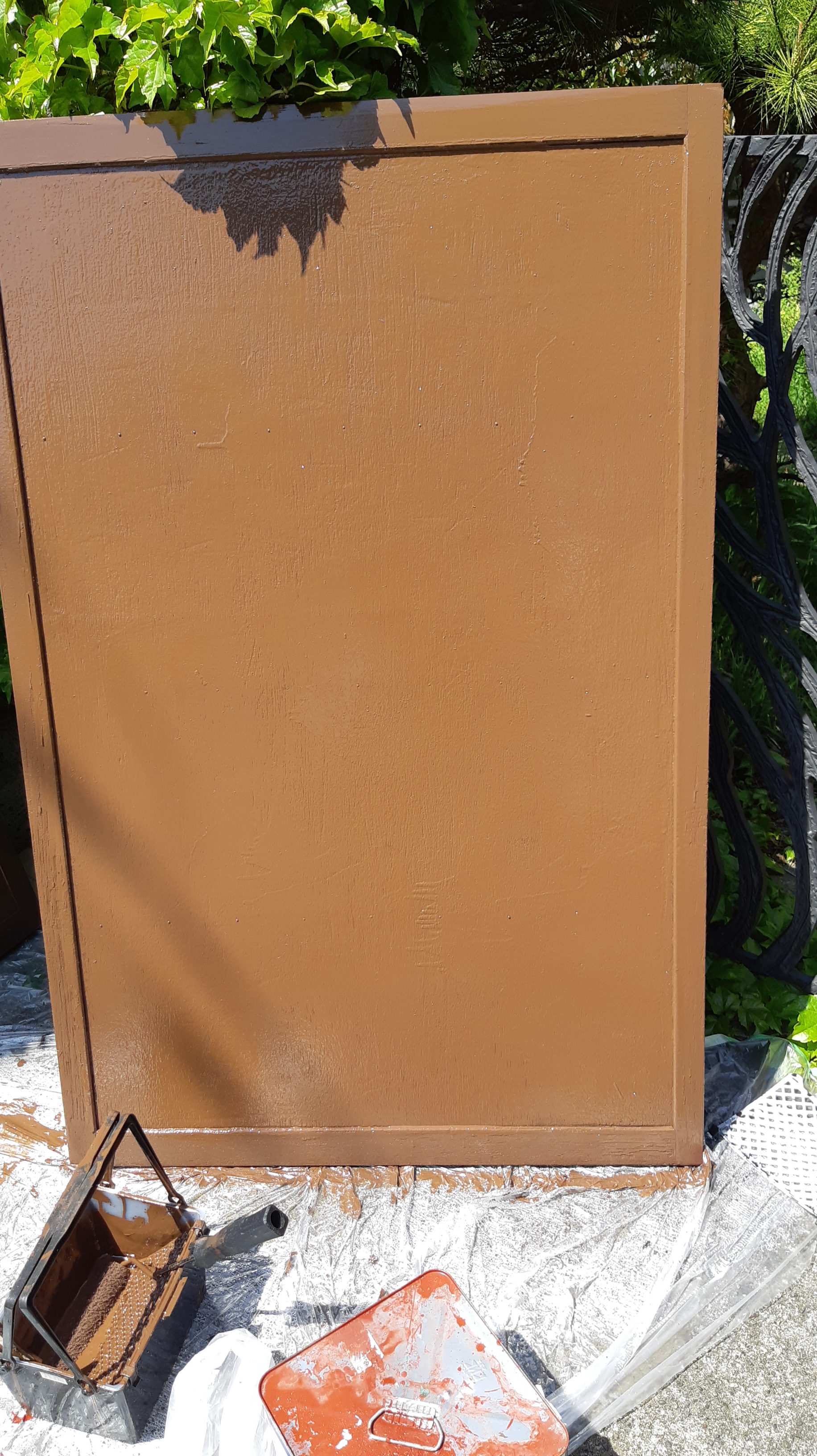なので、ベニヤを上貼りしてペンキで対応しました。