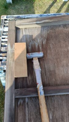 釘が残っているのでそれを取って、枠に残っている木くずとかをきれいにします。