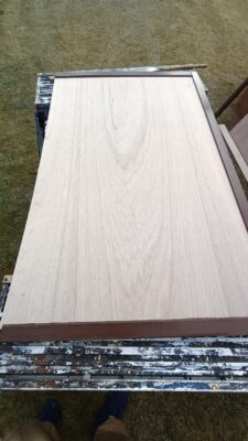 ベニアがばりばりになっても、枠さえしっかりしていれば貼り替えで対応できますので、安易にサッシに交換するのではなく、貼り替えて長く使うのがいいと私は思います。